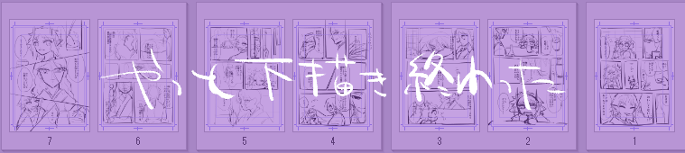 ネームとコマ割りについて頭を抱えている。ここからここまではこの段に収めたいな〜と思っているのに1コマはみ出るみたいなことがよくある