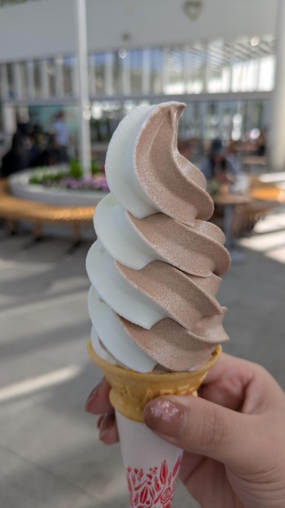 函館牛乳のソフトクリーム、函館競馬場のUMAJOスイーツ(スナッフルスという函館のチーズケーキ店)、ラッキーピエロ