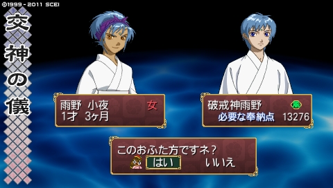 初めて氏神交神をしました。組み合わせは小夜ちゃんと称くん(破戒神雨野)!