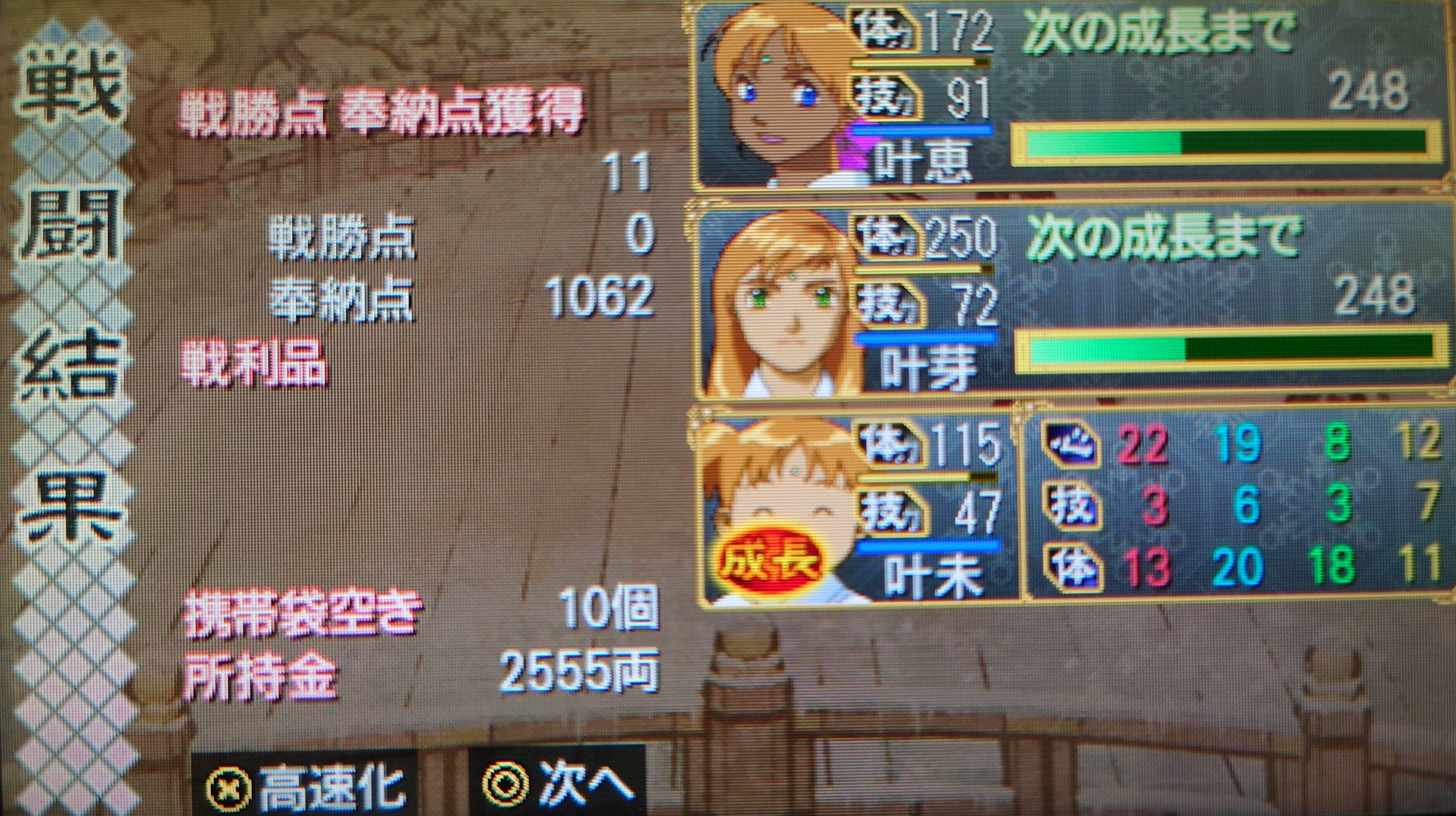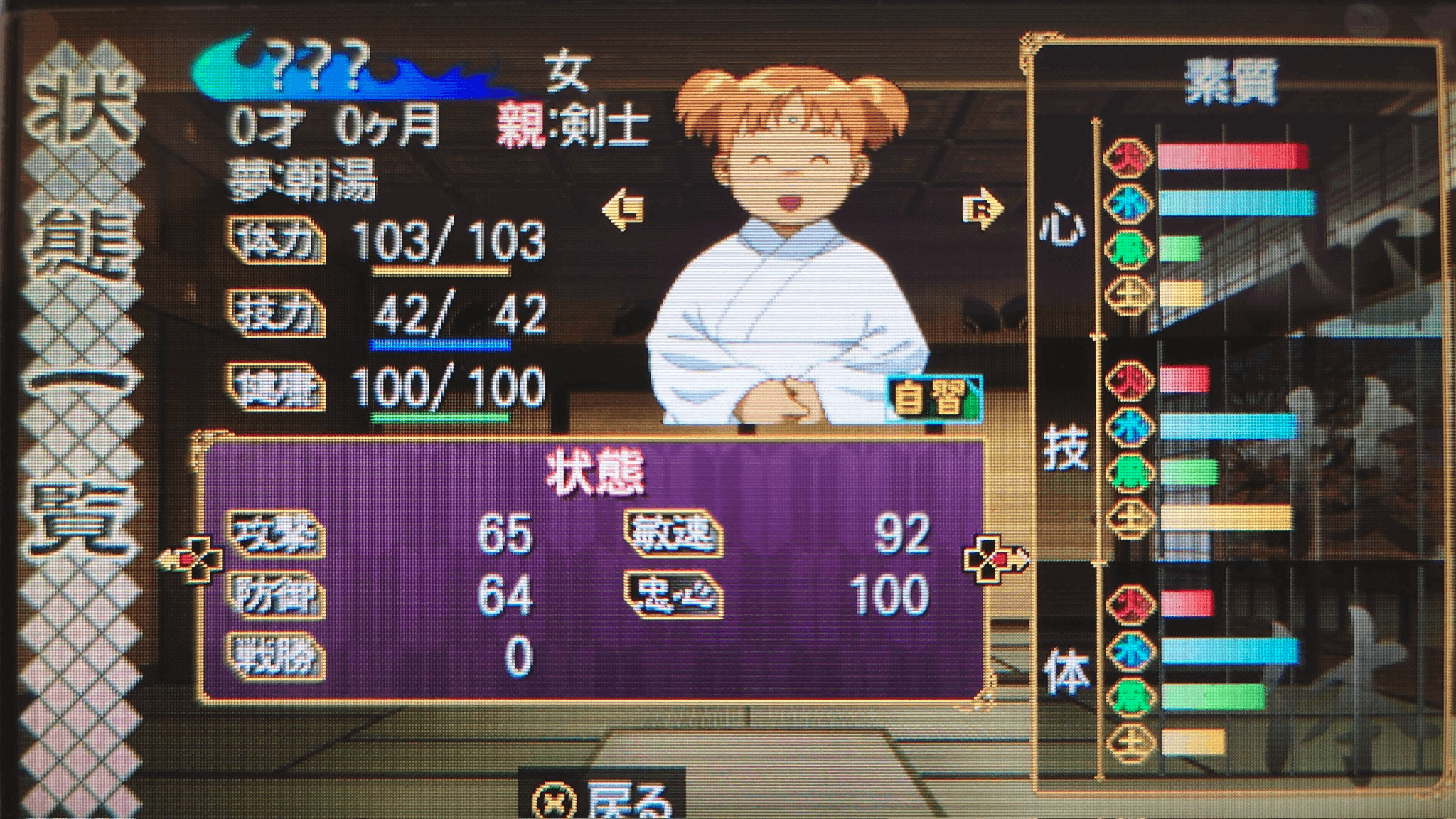 三回目の交神をどこにおくか考えている内にいつの間にか叶恵ちゃんは1才3ヶ月になっていました。体の値も上がらなくなってきてしまいました