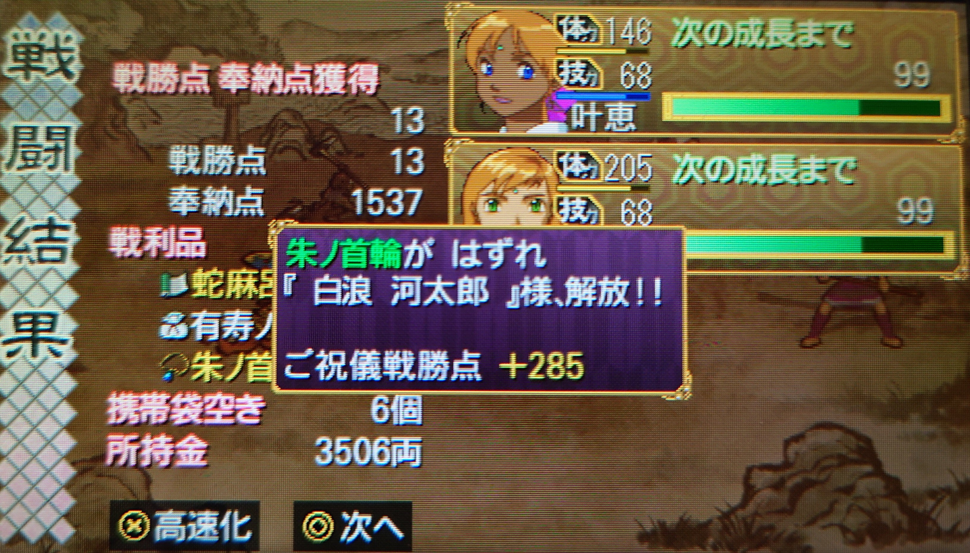 もはやついでになってしまいましたが水神・白浪河太郎さまを解放!