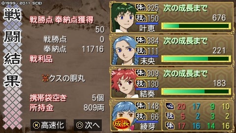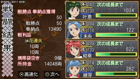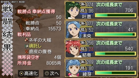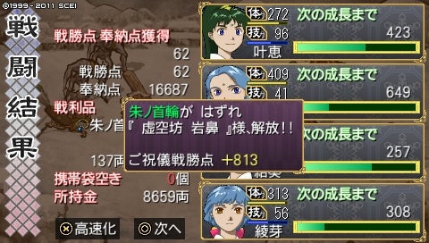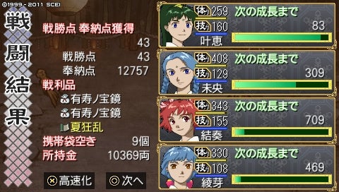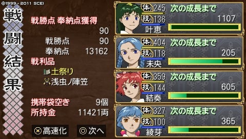 しかし2ヵ月で術4つ、武器も剛鉄弓やネギの大槌などをゲット! 神様も解放できたし、上々ではないでしょうか