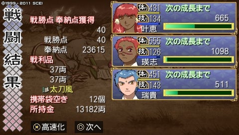 白骨城も怖くて中ボスには進めず。3人ですしね。やっと太刀風をゲットです。ずっとスロットにはあったんだけど