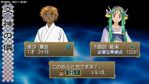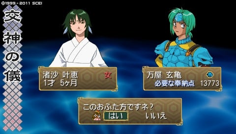 1024年11月、今度は麻音ちゃんの交神です。もう1才5ヶ月だよ。やばいやばい。お相手はすんごーーく悩んでこちら。水神・万屋玄亀さまです!