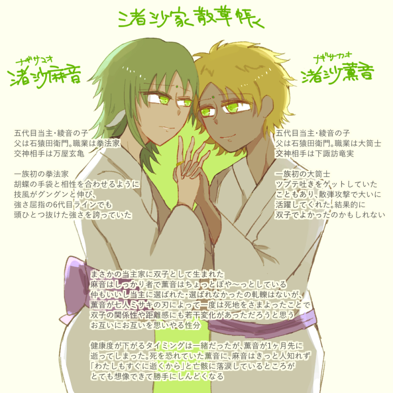 双子として生まれた麻音。どっちが上で下とかないのですが、第一子として書かれていたのは麻音のほうでした。だから当主の家系は麻音にお願いすることにしました