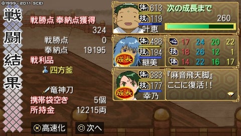 前衛ふたりが2回も眠らされている図。幸乃ちゃんに仙酔酒をお願いします。もうしっかりしてよね!