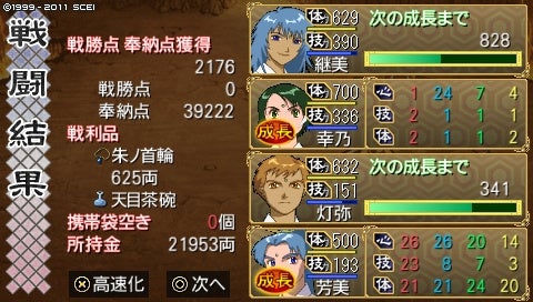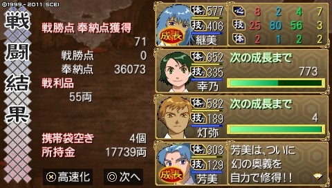 芳美くん初レベルアップ!技火が若手とは思えん上がり方しとるわ~……と思っていたら母:継美さんの技上がりすごすぎる。見たことない数値なんですが技水80技風56……?!