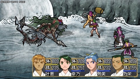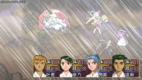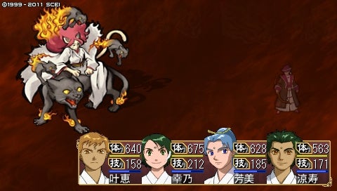 わりといつもの作戦ですが、石猿+魂寄せで技力吸い取りで序盤をこなします。技力なくなると単体攻撃ばかりになるんですが、つねに灯弥くんが狙われておりました……ただ前衛攻撃される分にはまったく問題ないです(幸乃ちゃんはめっちゃ避けるし、ふたりとも体力的にカバーできるので……)。後衛攻撃されたらきっついですが