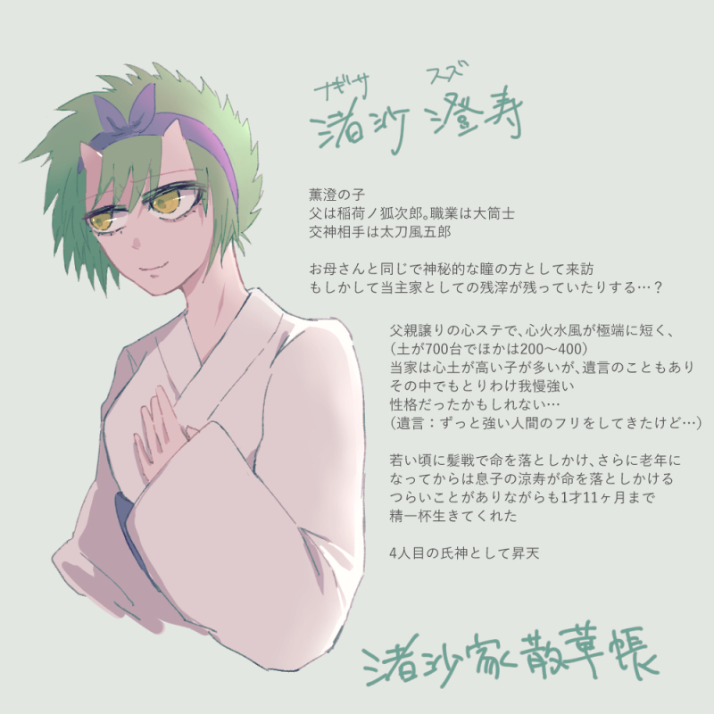 苦しい思いもたくさんさせてしまいました。白骨城で母・薫澄ちゃんや当時当主の灯麻くんをお留守番にして出陣し、髪まで進んだ時、澄寿ちゃんに死の淵を経験させてしまった。おじいちゃんの薫音と同じように