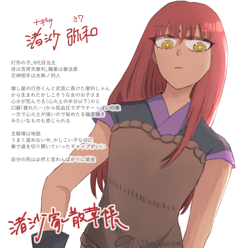 弥和ちゃんが当主になる前の月にちょうど髪を全部倒したので、弥和ちゃんの主戦場は地獄なんですよね。未知数なダンジョンにおいて弥和ちゃんの拳は本当に頼もしかったよ。昇龍の爪と相性抜群でね……体風が低いのを補うために拳法家にしたところはありましたが、本当に適役でした