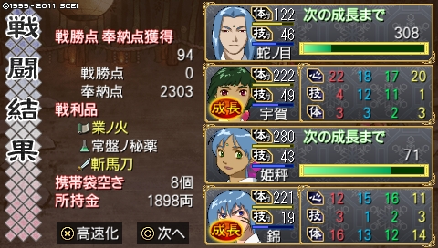 これまで3周やってきたんですが……この3人の顔グラ、全員当主経験者なんですよねぇ。当主って俺屍ではそれだけでまあまあ強い属性になるのでだれに当主属性を付与するのか、かなり悩んでおりました(すごいメタ悩み)
