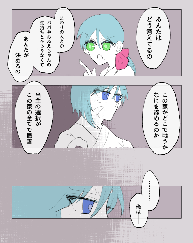 当主の自覚は求めてるけど、当主が判断したことが朽縄家にとっての最善と信じています。パパとおねえちゃんがいる頃は自分のわがまま押し通すタイプだったけどママになったからねぇ〜〜家のこと考えてんのよ。とくべつ弟思いってわけではない