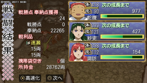 一度援軍を呼ばれましたが、紗吏ちゃんの二度目の薙ぎ払いで無事撃破。やっぱ薙刀士はいなきゃって職業よね~。やっぱり秋津ほしいな……相翼院こもるか……