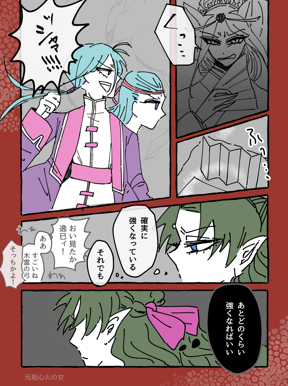 逸巳と潜吏の進言似すぎて草。ほかにも符持ってきてるのに揃って炎風の符使いたがってるしふたりして紗吏に鏡向けてる。年長者を立てようとしてる……(??)