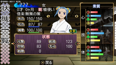 信条:無策の策とかキャラ濃いの引いたな~~~~? この心土の低さからして余計にごちゃごちゃ考えないことで精神を統一するとかよりもむずかしいことが考えられないタイプじゃないですか…? 次代の長女だぞ! しっかりしろ!