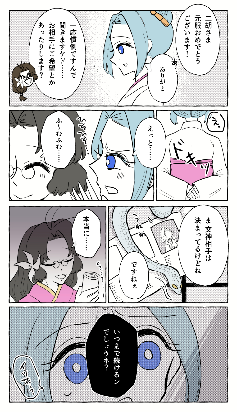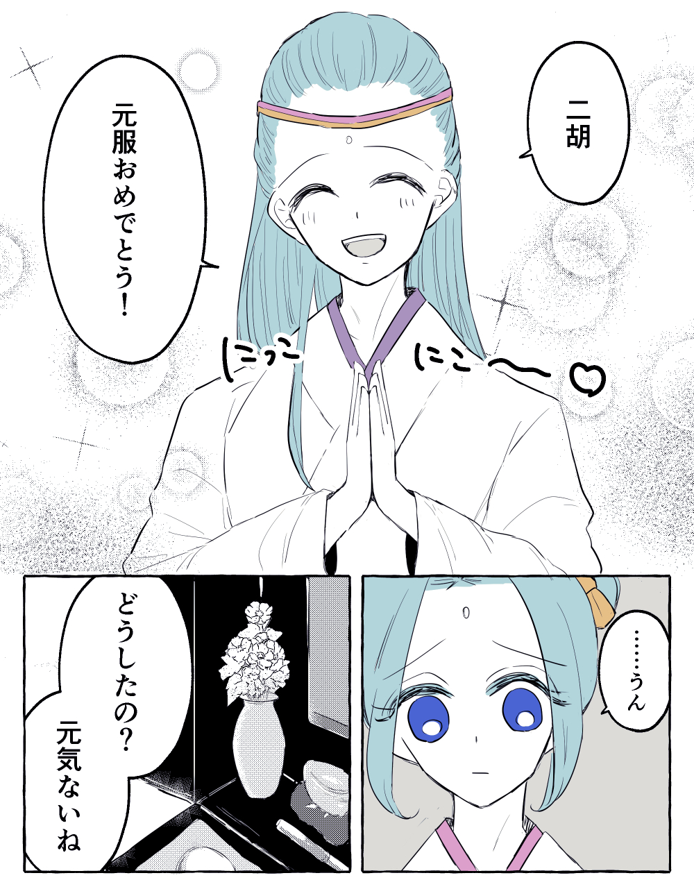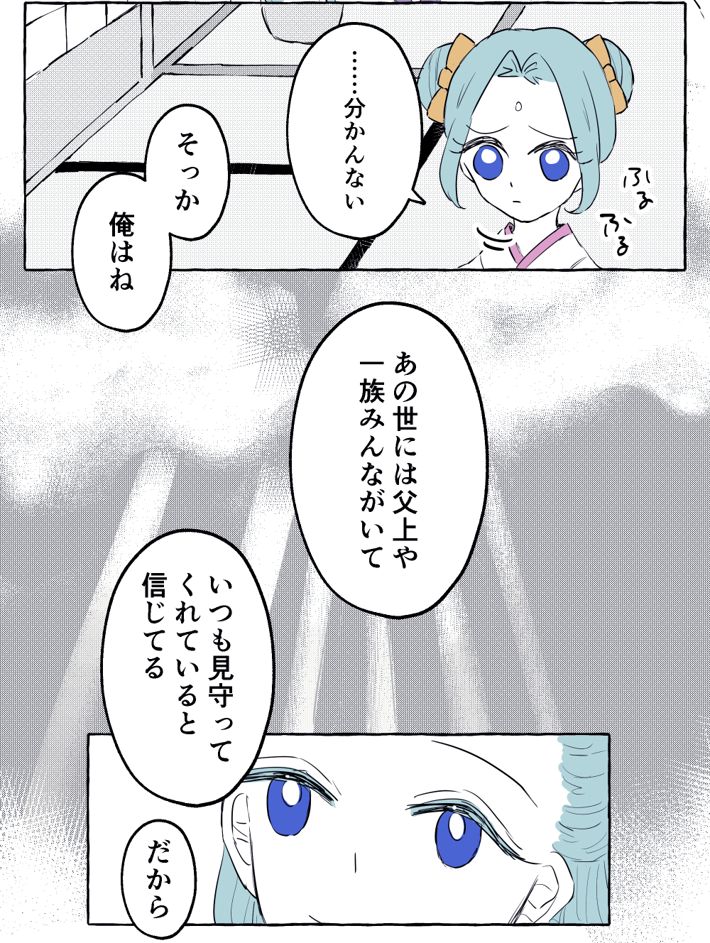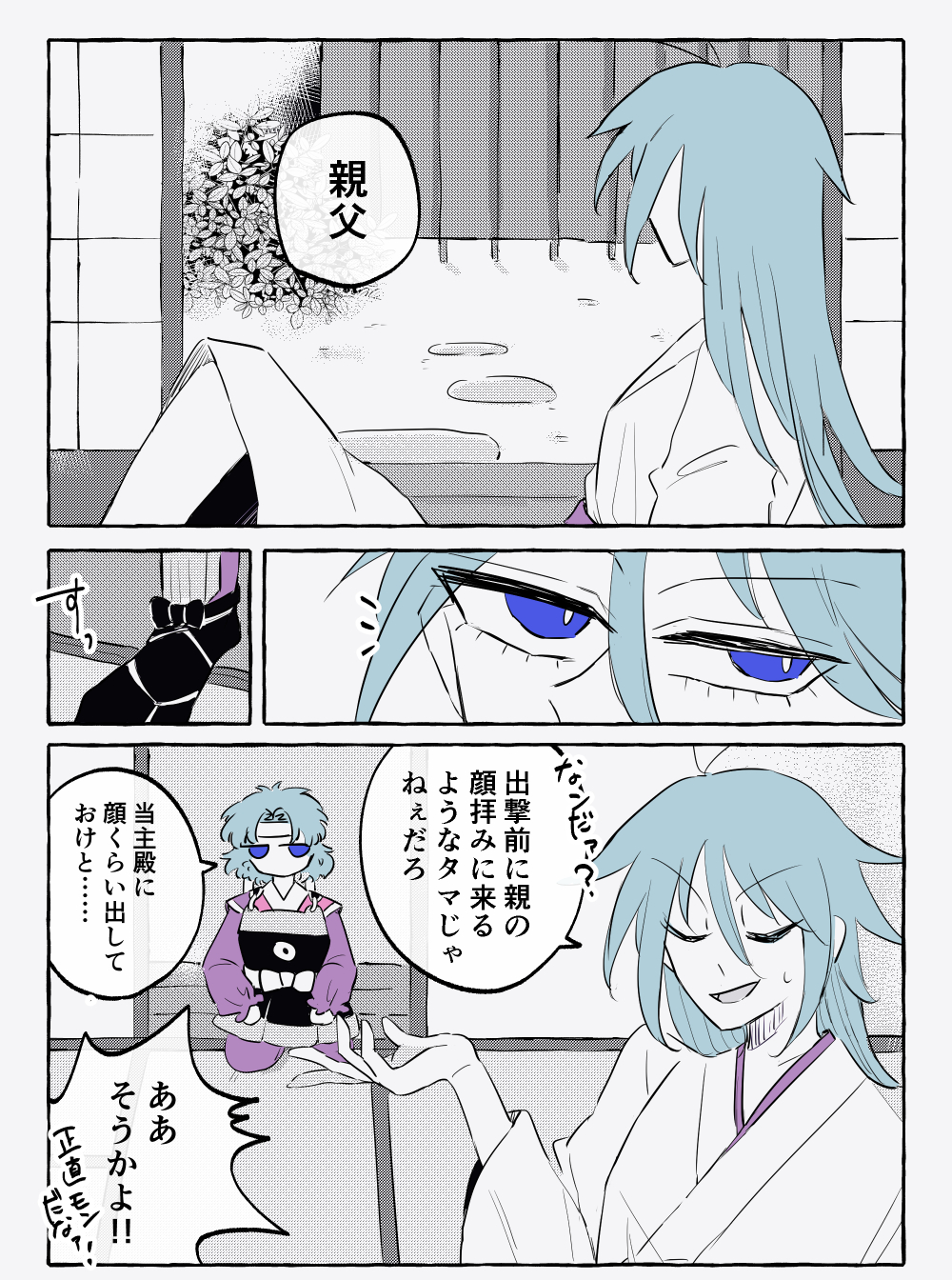 二胡ちゃんは久しぶりの女の子で逸巳もかわいがったんじゃないかな。一緒に出陣して五郎ズ倒したりできたのもよかったし、子どもの元服まで一緒にいられたのは(初代除いて)逸巳-二胡が初めてじゃないかな……。逸巳が長生きしてくれたおかげだなあ