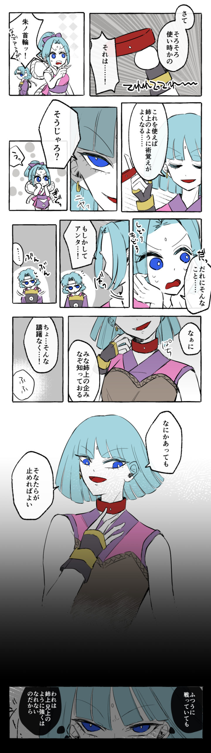 陽炎その他もろもろの術習得のために蝮ちゃんも帰宅前にやります、朱ノ首輪。うちの女子たちは胆力があるねえ。まむちゃんの場合は進んでやりそうだ