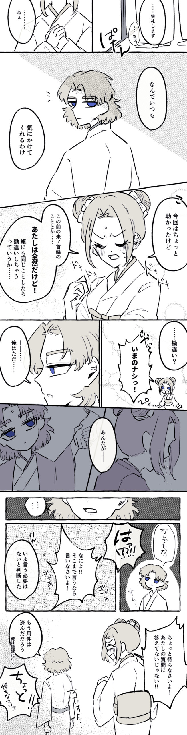 でも二胡は街の人から嫌なことを言われたことしか記憶にないので、その時洞谷が何を思って隣にいたとかはまったく考えたことがないのである(お互いに子供なのもあり……)。だからなんかやたらとタイミングよく気にかけてくれるけどなによ! と……思ってる……ようね……