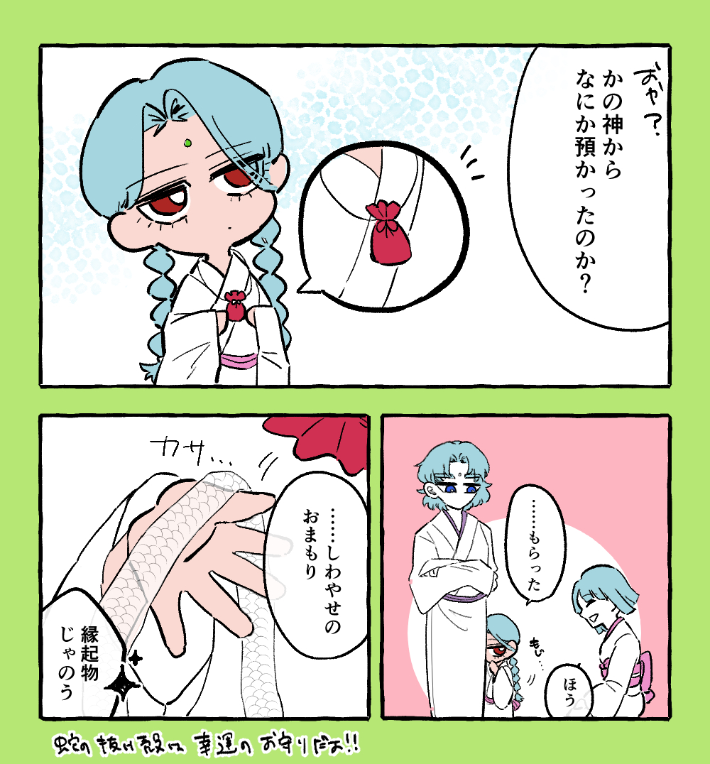 必携:お守りいいね。信心深い子なのかな。白蛇さま信仰のお守りってなんだろう……抜け殻とか?(ちょっとしたホラー)