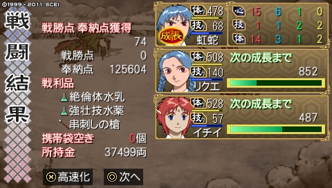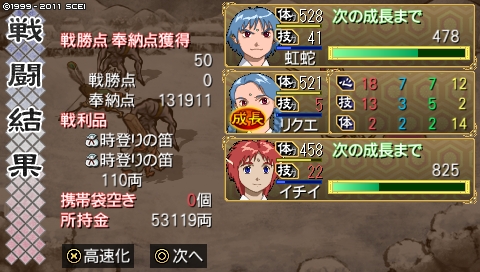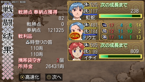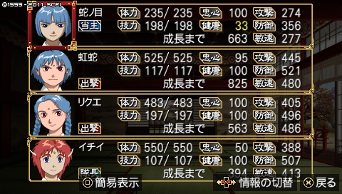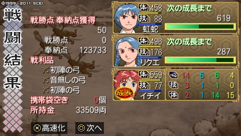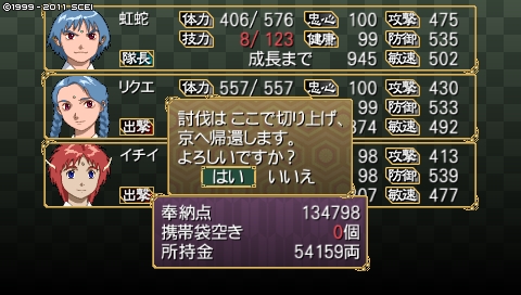 この討伐でよくイチイの忠心98まで回復したな(基本稼ぎは進言無視祭りになるので)。当主になる心構えがみえている