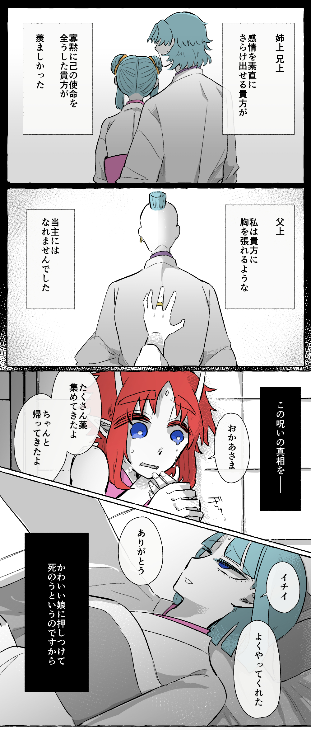あの人が誰なのかっていうところはやっぱり親の葉不見かな。でも子守唄ってだいたいの人は歌ってそうな気がするんですよ。蝮ちゃんに2回目に訓練つけた逸巳とか、二胡ぴも虹蛇が来た時は歌ってそうだし(姫秤家はウン……ウン……)。色んな人の声を思い出しているのかな……とかも思いました。朽縄のやり方だと当主家が看取る人が一番多くなるので、色んな人を振り返っているのかもしれません