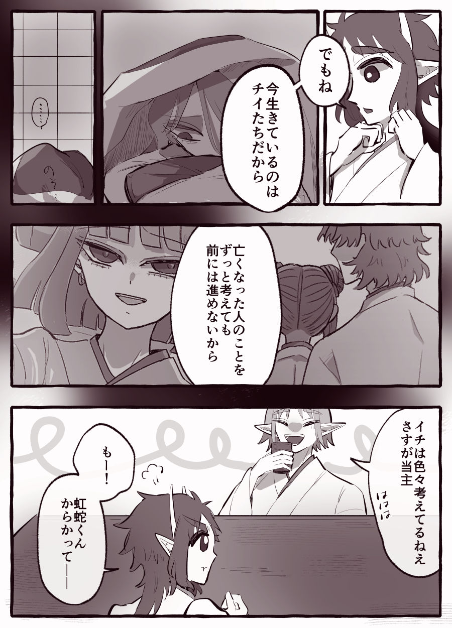 イチイって当主たる器なので、だれかを特別扱いすることはない。だからリクエが「いやだ」と言ったところで応えられないこともある。でもその感情を受け止める構えはある。リクエにとっては“足りない”かもしれないけど、イチイはその距離感を崩さない。崩すことはない(個人としてはリクエのこと大好きだしとても強くてかっこよくて頼りにしているんだけど、特別扱いはできない)