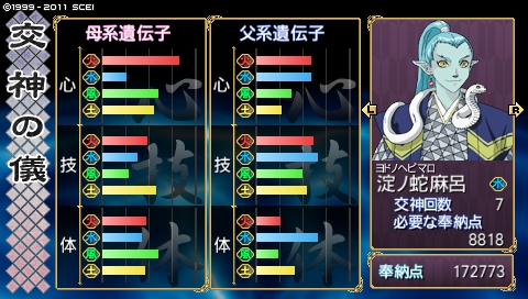 そして蛇麻呂さんも美津乳姫に負けじと1821点の奉納点アップです! なんか大江山越えて二柱の気持ちも変わったのかしら……自分たちの素質受け継いだ奴が大江山越えれるわけないとか思ってて、それでも越えちゃったし、まだまだ強大な敵に立ち向かおうとしてるから心打たれたとか……そんな……ないですか?