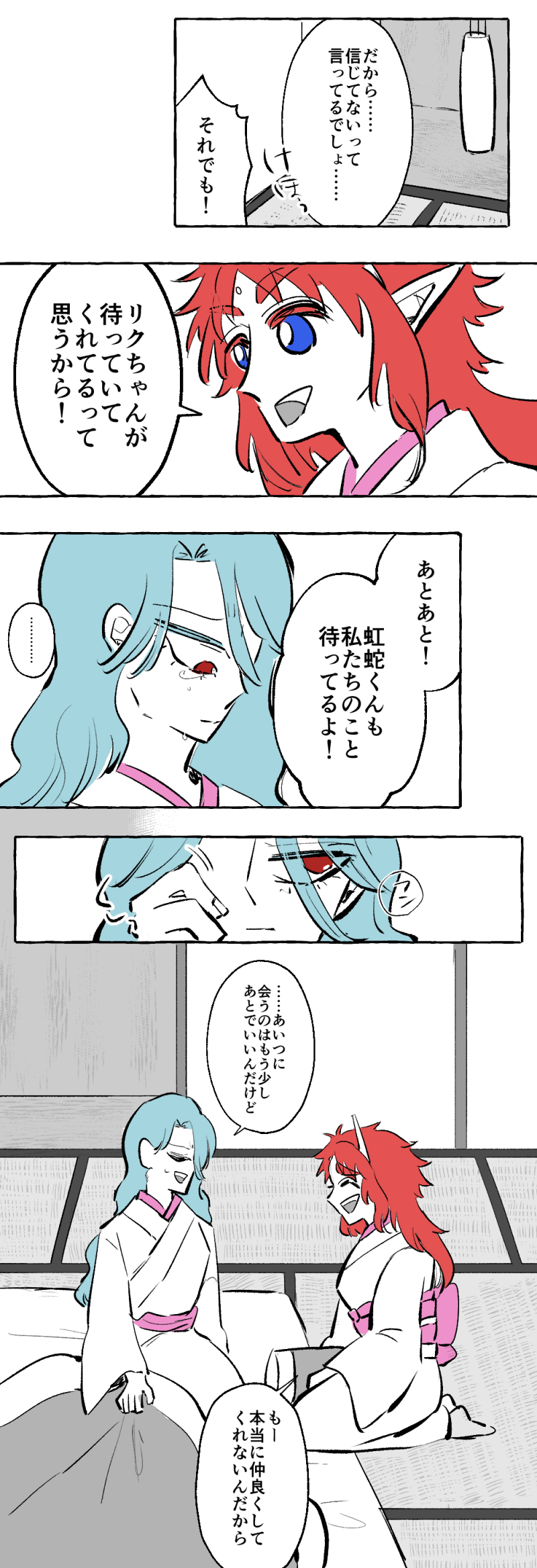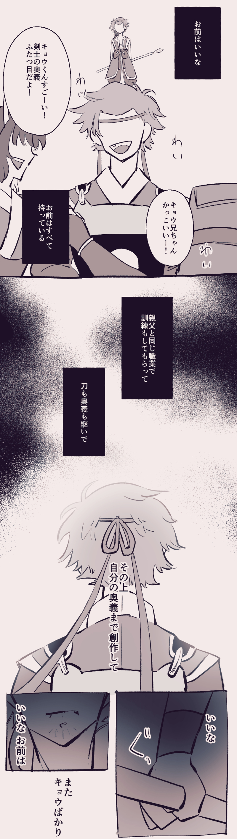 なんでカガミじゃなくてキョウを剣士にしたかというと別に細かい理由はなく「なんとなく」なんですよね。たぶん虹蛇もなんとなく決めてる。でも子供は気にするんだよな~~~