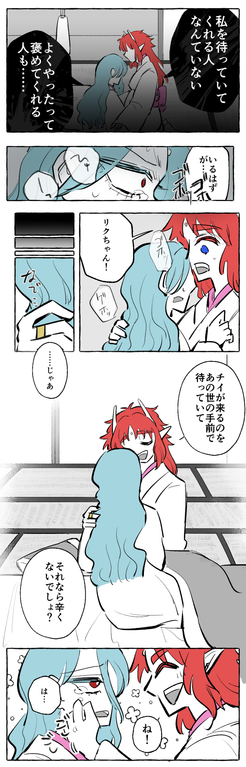 (リクエの存在に意味は)あったよ!とストレートに言っても納得してくれなさそうなのがリクエだし、イチイも一族個人を贔屓も肩入れもしないのでこういう形になりました。難産だった~~~