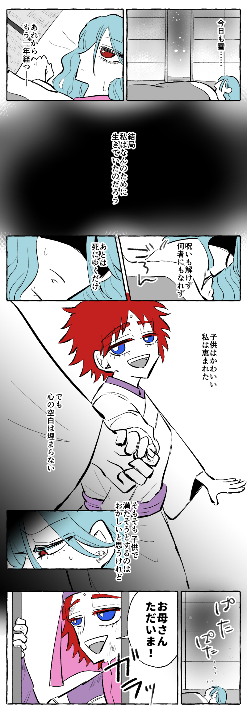 粛々と戦ってるイメージだったけど、朱点童子を倒して、でも呪いは解けなくて、それから自分の存在意義とか立ち位置に不安を感じていたのかなあ。かなりギリギリのバランスで立っていたのかもしれない……