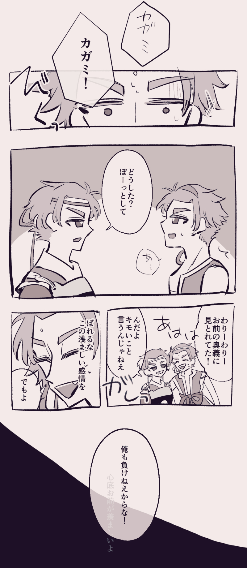 なんかおもろいことになってる。カガミは心水止まってキョウくんは心火止まってる。双子それぞれの色出てる~~~