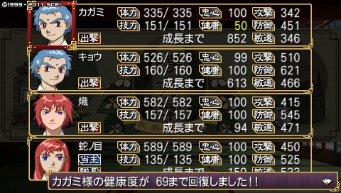 若手が当主になった時ってだいたい忠心下がっていた気がするのですが、全然下がらなかったね。まあそんなこと考えられる余裕がなかったんじゃないかなって思う(メタいこと言うと双子は心水高くて熾は心土高いからかもしらんけど)