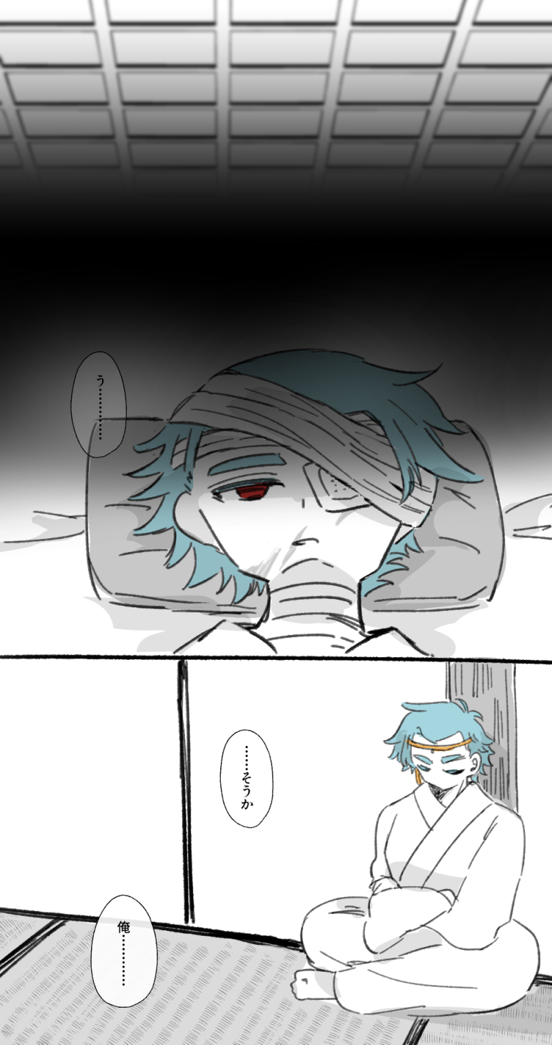 とても蛇足。カガミが戦闘服で紐外れてるのは瀕死の時に外れたからで、イチイが若干若返っているのは全盛期の体に戻ってるからです
