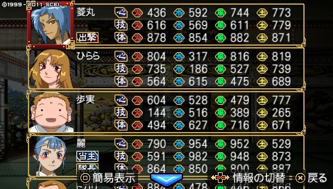 上の世代と比べると、めっちゃ弱いというわけではなかった。というか臣人が強かった。強かったが故に……というかプレイヤーが欲張った結果、ナギリちゃんが戦死して美蓮ちゃん家系断絶、というね。どうして何周もやってるのに大江山越え後を舐めプしてしまうのか