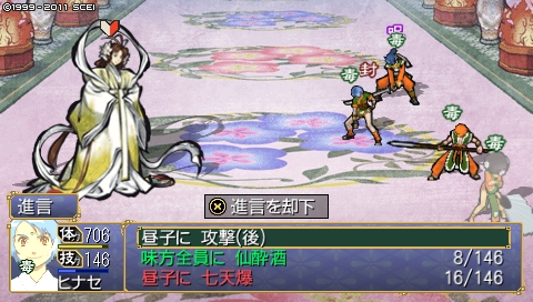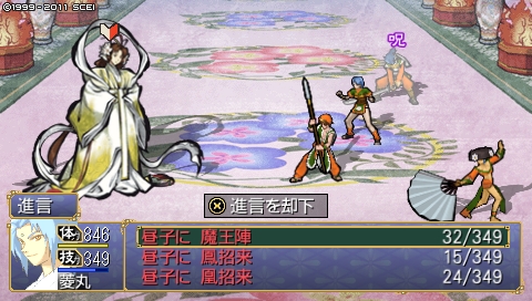 これは全体術のターン。風祭り→印虎姫ならラッキーだけど真名姫だと菱丸くんが厳しいので後ろに下げます