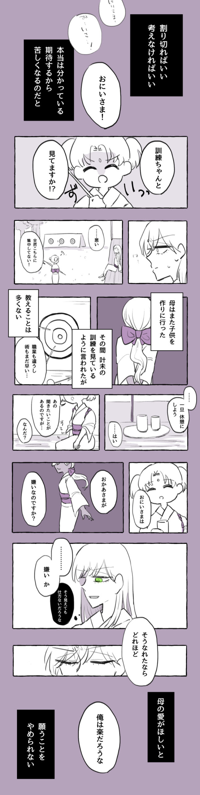 母親に愛されたいけどもうメンタルボロボロの叶芽と、叶芽の感情が揺れ動いていたことに気づいた叶恵。果たして関係の改善はあるのか……? 結末はもうずっと前から決まっているので描くのが楽しみです